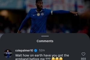 体育资讯8月10日讯 帕尔默今天在Instagram评论了队友托辛,并对他戴上队长袖标进行调侃。