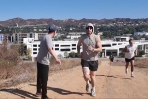 视频中,张镇麟与刘翔昔日对手、美国110米栏名将多米尼克-阿诺德一起跑山。
