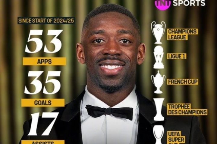 【金球奖稳了?】登贝莱2024/25赛季表现: