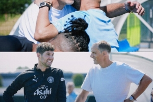 体育资讯8月18日讯 英格兰主帅图赫尔今日来到曼城训练基地参观,曼城官推晒出图赫尔与瓜迪奥拉亲切拥抱的照片。