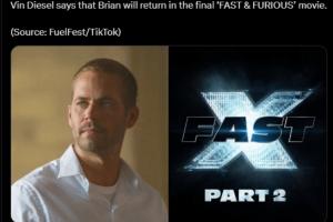 体育资讯10月4日讯 今年夏天,主演范·迪塞尔曾在洛杉矶举行的FuelFest活动中透露,最后一部《速度与激情》电影预计将于2027年4月上映,故事将重返洛杉矶向系列的起点致敬,曾由已故演员保罗·沃克饰演的角色“布莱恩·奥康纳”也将在这部电影中回归。