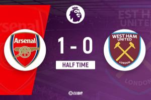 半场-阿森纳暂1-0西汉姆 赖斯破旧主厄德高伤退卡拉菲奥里中柱