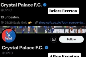 水晶宫各项赛事19场不败就此告终,球队官推的介绍也删去了“19场不败”的备注。