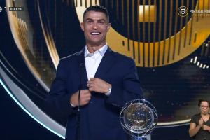 体育资讯10月08日讯 在葡萄牙环球奖颁奖典礼上,C罗获颁萄牙环球声望奖,以表彰他整个职业生涯在俱乐部和国家队所做的贡献。