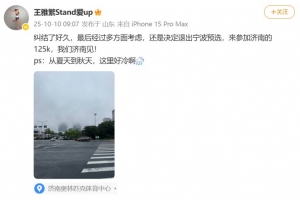 王雅繁写道:“纠结了好久,最后经过多方面考虑,还是决定退出宁波预选,来参加济南的125k,我们济南见!”