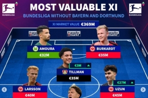 德甲除拜仁多特外身价最高阵:法鹰5人药厂2人,斯蒂勒卢克巴在列