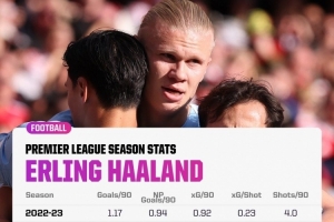 哈兰德本赛季创造英超生涯新高的数据: